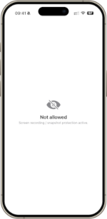 However, during a screenshot, iOS hides the secure content. When that happens, the background becomes visible instead. This allows us to show a clear message like: “Not allowed. Screen recording / snapshot protection active.”